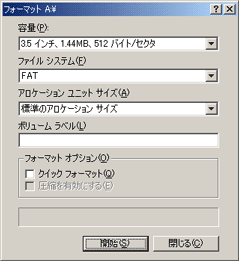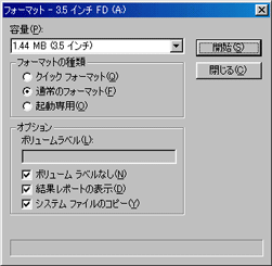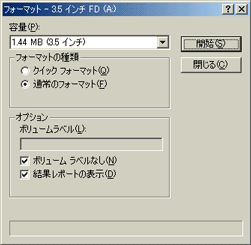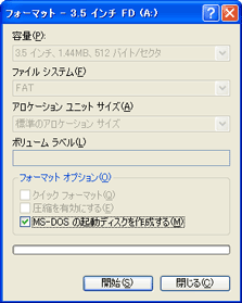 フロッピーディスクをフォーマットします。オプション設定は右の画像の通り設定してください。